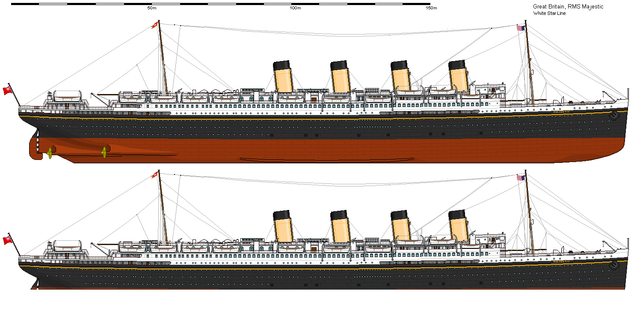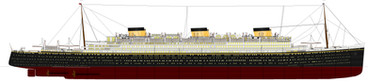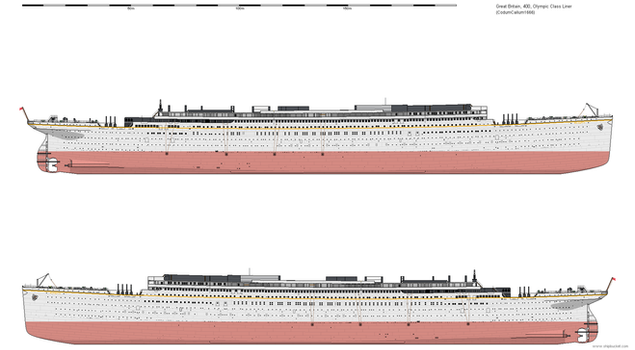 And now Titanic, aka hull 401 at the moment of launch in 1911.This is the appropriate state the ship would be in for Robert Read's colors for Titanic's hull would best fit as the paint isn't the final coat and is just a placeholder of sorts for how the hull would be painted.