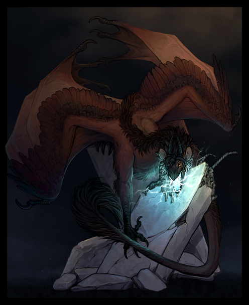 Private commission for Katalist ; started on this guy back in April and finally got around to finishing her piece up. I'm slowly starting to feel more confident with lineart, which is nice. And WOW was this a cool design to practice with - shiny feathers and hands are fun.Only one last piece I want to finish before ArtFight - hoping it'll be possible!