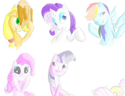 This drawing was worked on and off over a whole month. The idea came from my friend katana, who suggested I draw some mustached ponies. So, I made a sketch, and showed it around. Folks seemed to really like it, so I set off to do a finished version,which you see here!