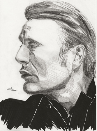 Portrait of Mads Mikkelsen, Danish gymnast, dancer and actor. the current star of the TV series "Hannibal"Pen and ink on bristol board, 8 x 10 inches.
