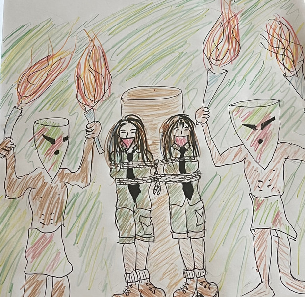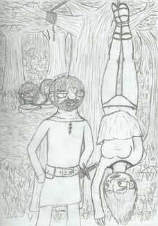 Sorry I haven't updated much. Didn't get as much chance to write or draw as I wanted on Monday. I had to help my parents lay down grass sod in the front and back yards. Because of when the sod was actually delivered, we had to do it in the afternoon, which in Texas means it's about ninety degrees minimum.Anyway, after that was done, I took a shower and spent the rest of the evening relaxing playing Rome Total War, and that's where I got the idea for this one. In the game, when you take an enemy town, you can choose to simply occupy the town, sack it and kill everyone there, or enslave the people. When I choose the last option, I think of something like this, with a long chain of slaves marching to my other cities.