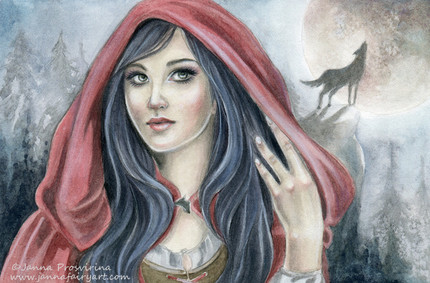 Red Riding Hood's so pretty and the expressions of her face totally match the atmosphere of this picture! Wonderful illustration!