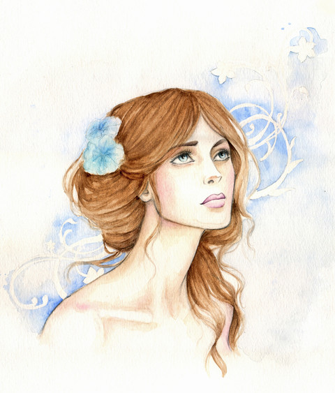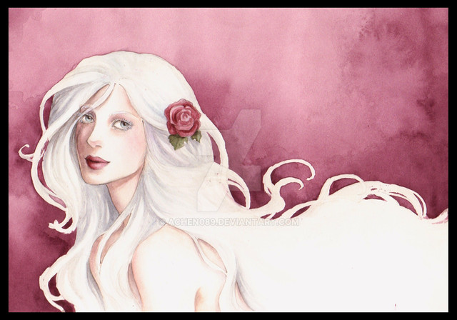 It seems to be a confident, independent, and yet romantic girl. or at least that's how I interpret it. You really mastered the face.