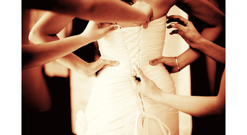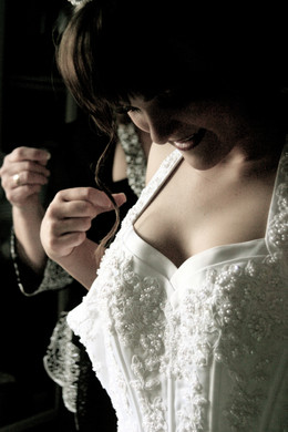 now this is purdy. i love the 'teasing' sentiment this shot puts across...and it's a shot of a woman's back and whatnot (damn sexy, i say). the hands working on her buttons tells a story of an anxious bride on the morning of their wedding day, as she dons her gown. i love this one