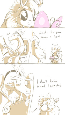 The last time ponies did not believe Discord and Fluttershy are friends, he almost blinked out of existence.
