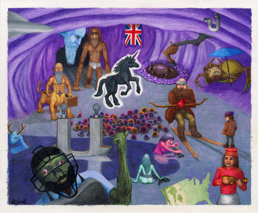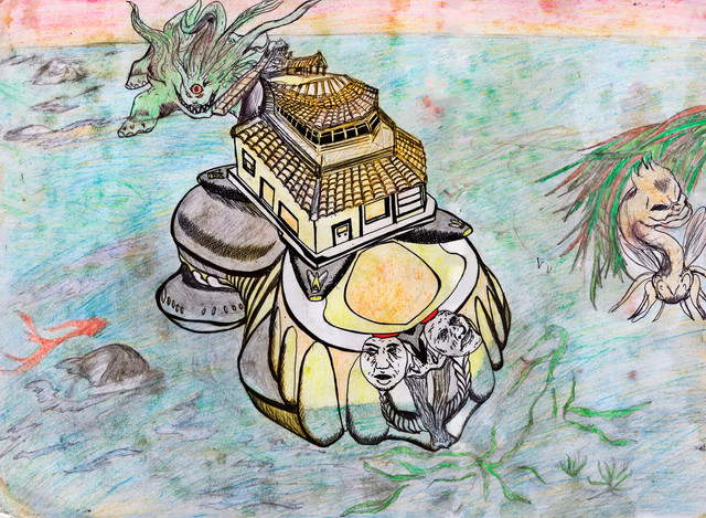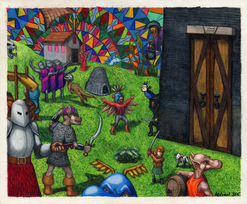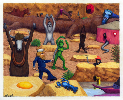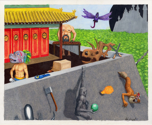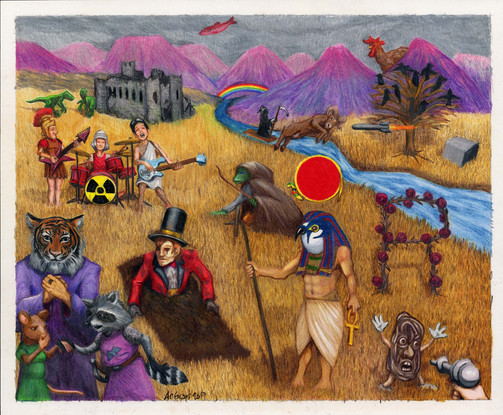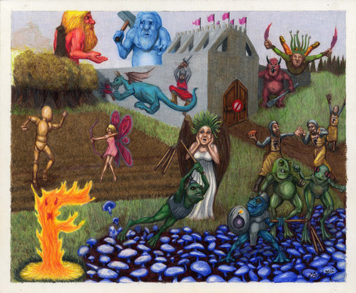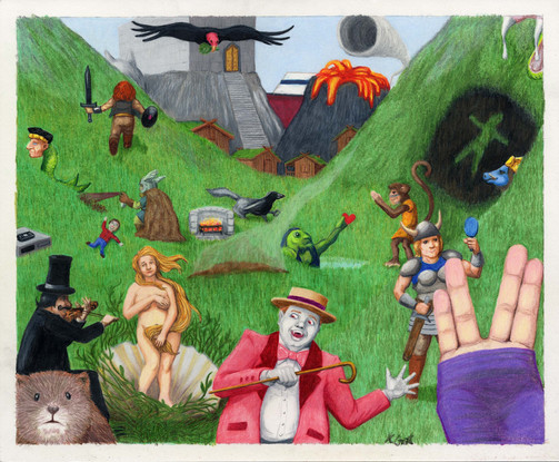 Colored pencils and pen and ink on bristol.