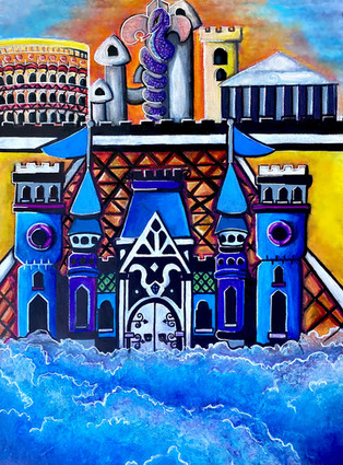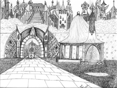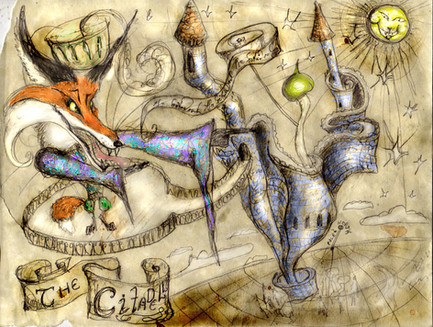 P is for Phoenix and a Pixie with a Pearl about to get Pawed. P is for a Paladin on a Paisley Pony and a Pirate Pushing a Pram. P is for a Pit and a Pendulum outside the Palace.