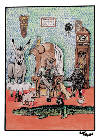 U is for the Underworld with its Underground Lagoons and U-bends where Uranus keeps his watch. U is for Ullr skiing past a Uranium Unicorn toward an Usher playing a Ukelele. U is for an Urayuli in his Undies and an Undead Umpire.