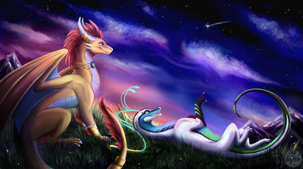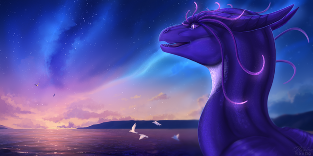 #commission #digital #dragon #fantasy #moon #oc #originalcharacter #purple #sky #stars #art