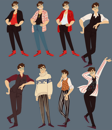 outfit asks from tumblr :^)1) radical 90s clothes. LMAO at first i thought he’d be embarrassed but nah he’s just pleasantly surprised lol. he’s completely okay with this unexpected situation