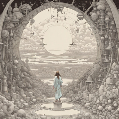 #adventure #ai #aliceinwonderland #crescentmoon #landscape #mountains #naturelandscape #portal #somewhere #sunset #naturebeautiful #aiart #art #through_the_looking_glass #midjourney