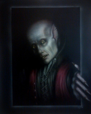 Bat version of DrΓ‘cula (Coppola's film). Airbrushing on t-shirt.Sorry for the quality of the picture.
