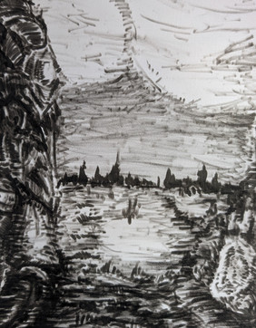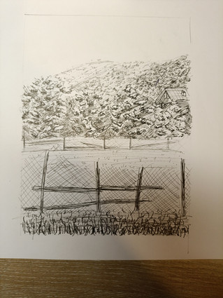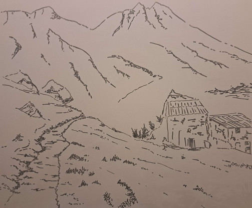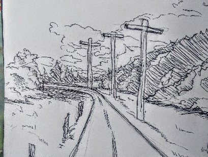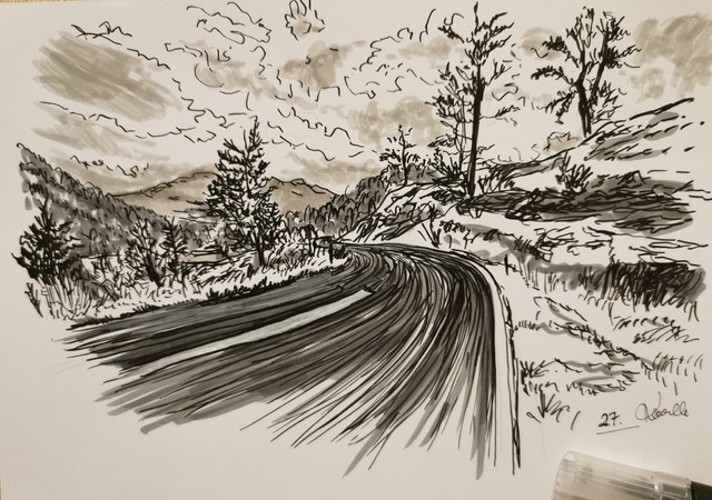 #bridge #bushes #drawing #freehand #grass #illustration #ink #landscape #mountain #nature #pen #rural #rustic #scene #sharpie #sketchbook #traditionalart #trees #dirttravks