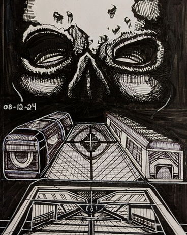 #atmosphere #blackandwhite #central #complex #diamond #digitalart #dramatic #drawing #enigmatic #eye #frame #geometric #halftone #intricate #patterns #shading #shapes #sketch #skull #surreal #texture