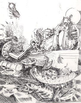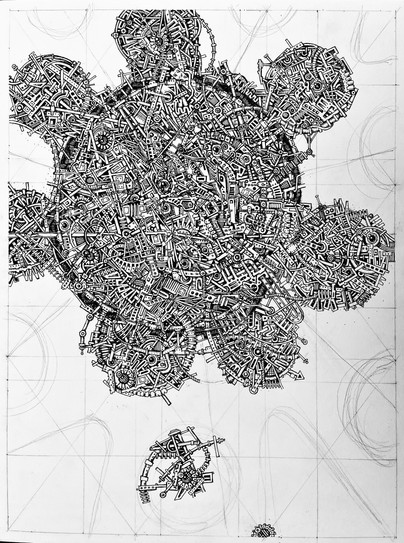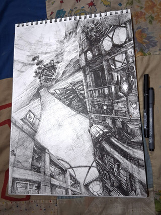 #pen #ink #traditionalart #scifi #blackandwhite #buildings #city #cliff #drawing #face #fantasy #farm #illustration #mechanical #nature #surreal #technology #crossthaching