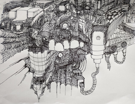 #pen #traditionalart #conceptart #sketch #surreal #ink #scifi #architecture #abandoned #blackandwhite #cityscape #crosshatching #cyberpunk #darkart #detailed #dystopian #environment #industrial #lineart #machinery #mechanical #pipes #postapocalyptic #ruins #sketchbook #tech #wasteland #mechanicalart #environmentdesign #grimdark