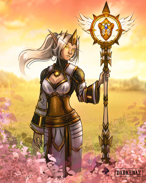 Here is my artwork of Game Character Mep. She is a blood elf Paladin from the World of Warcraft universe. I really like Design of Tier 2 from the Wow Classic, so I decided to dress her that way. I know that in Wow you cannot use a two-handed weapon with a shield, but I decided to borrow this weaponry from the ancient Greek warriors - the Hoplites. They often used Aspis ( Hoplons ) - Heavy Shields and Dory ( Doru ) - Spears.