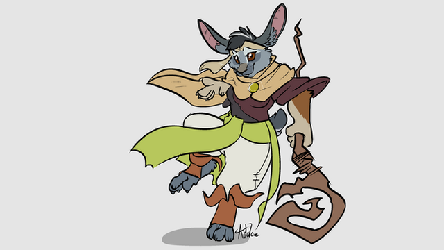 It's cool to get commissioned to do pieces that align with your own setting. Commissioned by Project of their character Stitches. They are out doing research work that likely involves ele'ins.
