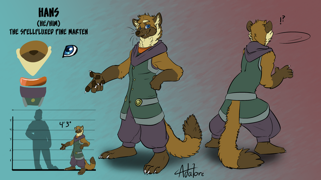 He takes the form of a Pine Marten which is part of the "Dook" family in the mana tear. Hans will start to get way more TF art now as someone that suffers this fate, both because I will artify it and because I should totally commission some of it involving this doofus.