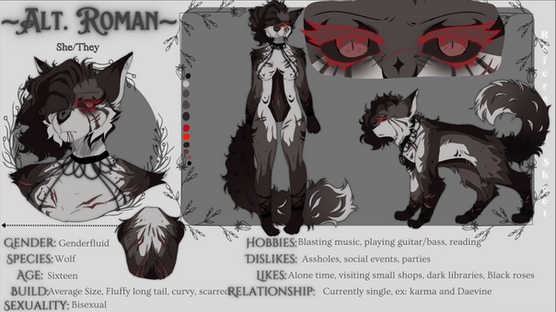 #anthro #black #character #female #furry #oc #red #reference #refsheet #sheet #wolf