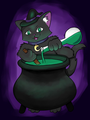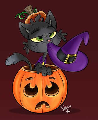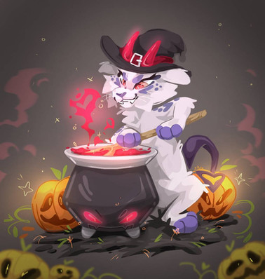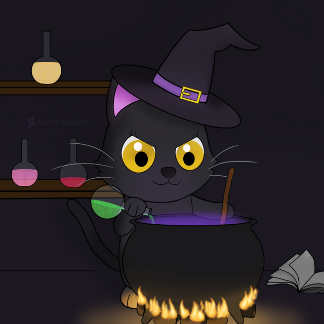#artfight #cartoon #cat #digitalart #drawing #endora #feline #hat #mask #mixtures #originalcharacter #potions #pumpkin #witch #adamiro #artfight2021 #sapphirejunebug