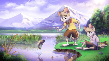 #artfight #ashanti #cartoon #daylight #digitalart #drawing #feral #fight #forest #happy #jump #lake #meadow #originalcharacter #summer #sun #water #kitka #adamiro #art #artfight2022