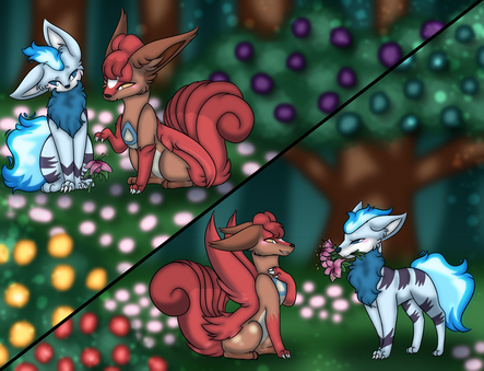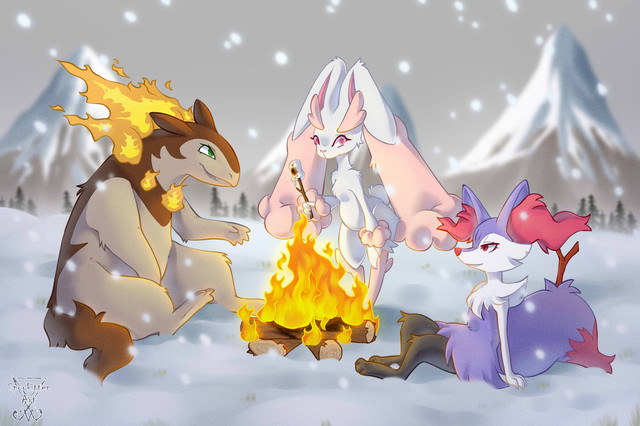 Braixen and Furfrou (these characters) ⓒ (I hope you like it )