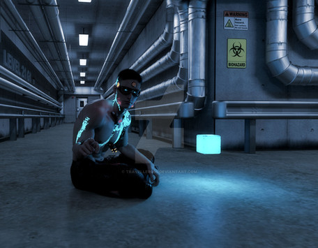 Nice analysis Well, he's a character from one of my personal projects. In the story, he actually volunteered to be kept in a special laboratory in order to avoid any damage that his powers can cause in the outside world. He's the first of his kind. He also allowed the scientists to examine him and try to detect the source of the powers. However, when the world is threatened by a mysterious cyber-terrorist, police has eventually no choice but to ask the psionic for help.