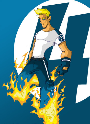 Actually blue burns hotter than orange, and white burns the hottest. And the color of the flame is dependent on the type of fuel involved in the combustion. So in this version of the Human Torch, Johnny's body is using a different type of energy source to produce the flame.
