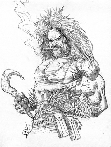 You have some good positives though I like the way ya did his hair and his vest, which looks like leather which you seem to be the best in the business to draw stuff like leather, it's like when you draw Emp her costume looks amazing. Overall this to me is still a good Lobo pic.