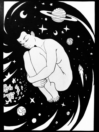 Galactic winds, universal thoughts. Done with ink on paper.Art print of this illustration and tons more available at: