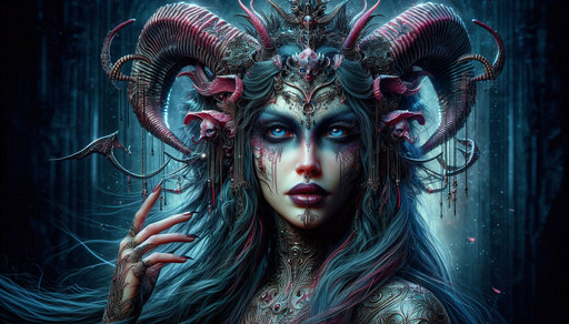 #ai #characterdesign #conceptart #darkfantasy #demoness #digitalart #digitalartwork #edited #epicfantasy #evilqueen #fantasy #fantasyart #fantasyartwork #fantasycharacter #goddess #gothicbeauty #gothicfantasy #intricatedesign #portraitbeauty #portraitstyle #wallpaper #digitalcreations #mysticalfantasy #intricatedetails #demonhorn #aiart #fantasybeauty #fantasycreations #epicbeauty #mysticalbeauty