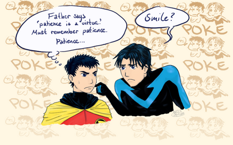 i love it when robin replys that. mostly because after he says that, bats fly away and i am like "omfg look bats omg batman on god i swear slade is screwed!" i go crazy in other words.