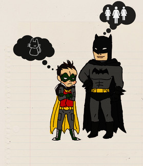 Β Don't know about Bruce being a father figure, he seems too messed up in the head for that; dressing up as a bat and going out to punch criminals in the face for a hobby. More like a particularly dangerous teacher, boss and mentor to the Robins (Richard and Tim, from the DCAU). And even if Bruce could be like a father, it doesn't make forgetting the actual father's any better.
