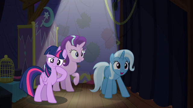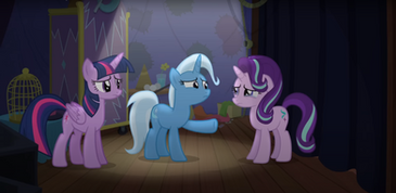 Trixie: Quite, Twilight, quite. Raging sandstorms, desert pirates, trolls, blacktails... but it'll be worth it to enchant and inspire the penniless colts and fillies with my magical talents. If there's one thing the Great and Powerful Trixie likes, it's testing herself against the fiercest and most unforgiving circumstances.
