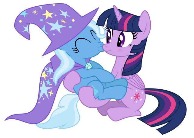 Trixie: Now the lesson can begin...*slowly moves tords Twilights face while closing both eyes*