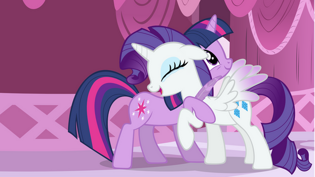 It's strange though that Twilight has it sticking out through he hair and Rarity doesn't. :3 Oh well, blame the animators, not the fans.