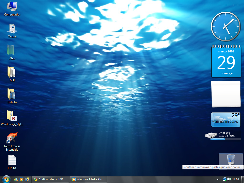 Você verá que com esta sidebar seu ícones da lixeira poderá funcionar normalmente no canto da desktop!