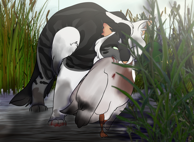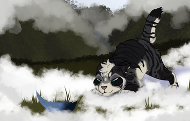 Slatepaw's encounter with the rouges was a serious one >:0 He's lost a good most part of his ear in his scrap and a new scar or two, but hey he's just more handsome with some scars ;3c