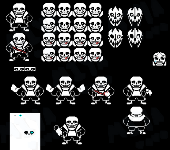 Hey all! These sprites are for a mod concept utilizing a character named Absolution- Basically an imposter Sans that takes form of a virus that splices sprites in order to make their own appearance.However, due to the original creator of the concept being accused of having done some pretty heinous things, it was scrapped out of respect for those who were allegedly hurt. Posting these sprites are entirely for archival purposes, you may not use them in any way, shape, or form.
