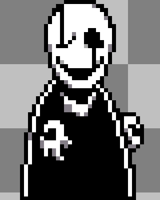 This person is actually talking in wingdings, is also black and white, can only be found by hacking the game (that makes it actually lost in time), and when you leave the room you ALWAYS come into the soundtest room with Gasters theme