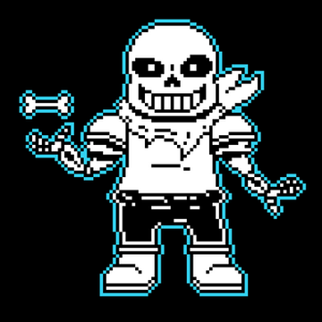 I've created a custom underswap sans battle sprite.Β Β * YOU'RE BLUE NOW! THAT'S MY ATTACK! MWEH HEH HEH!