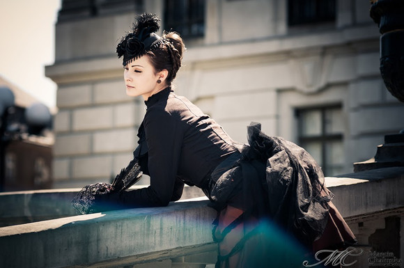 I personally don't often like Victorian era fashion, especially the more expensive looking styles for women of the time. However, this shot is very attractive. I like the attention to details. The curls in her hair add a hundred points to the whole shot. Very nicely done.