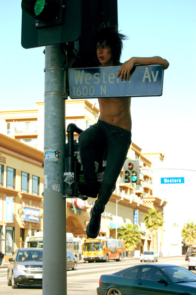 Deniis. Sitting on a cone. he was supposed to take this picture on a a street but he got scared.. eh.Related content