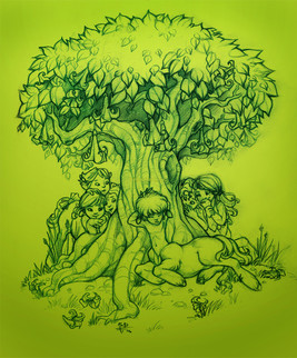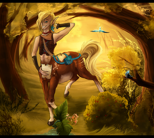Aww, this is cute.. ^_^ Anyways, I like little Faeren's calm expression, pose, and outfit. And the way you did little Manea. And the trees, leaves, and grass. And the lighting.