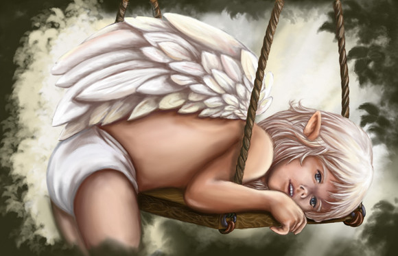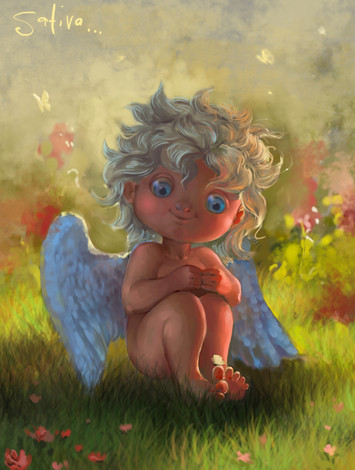 Oh I have to agree, the use or warm tones in this piece is just phenomenal. What can I say, it brings this innocence into the piece with ease. And the pose just adds to that, the outstretched hands and the curled up legs work greatly in conjecture here. And the facial expression of amusement over the simple and seemingly insignificant leaf leave quite a lot to think of innocence. If anything this a masterly done piece, in my opinion the wings could have been drawn more open, or outstretched to give a sense of greater amusement, or playfulness. Otherwise this is a great piece of work.