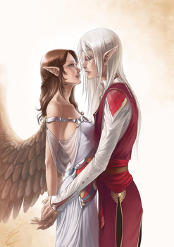 The enviroment you drew them in...err, the silk sheets, is a really nice shot. ^^ I especially love the wings.