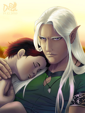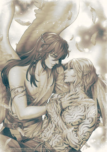 #angel #elf #embrace #fantasy #kenna #koli #man #mixedmedia #pencil #prince #romance #wings #woman