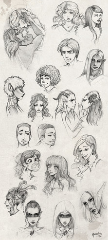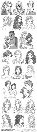 Woot, the final batch of 32 digital sketch commissions! Took three months, but I'm happy to say all 96 portraits are complete and drawn to client specifications! InuYasha's in there somewhere, and a kitty, too, hee.Characters and their designs are © their owners!
