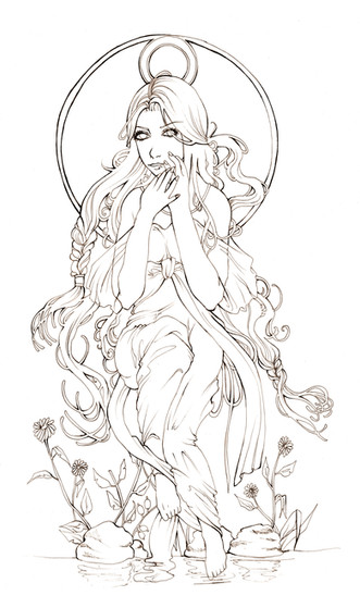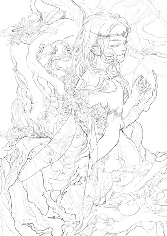 I made an inked version as a coloring pageΒ for my upcoming fantasy coloring book.